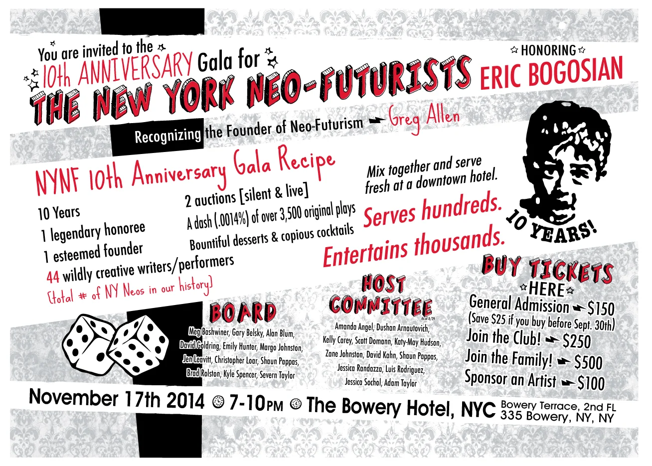 NOVEMBER 2015: KM coordinated and performed at the NYNF 11th Annual Gala Benefit at the Bowery Hotel on Monday November 16th, 2015, honoring esteemed playwright Chuck Mee. The wine flowed and loads of money was raised to help make art for the coming year.